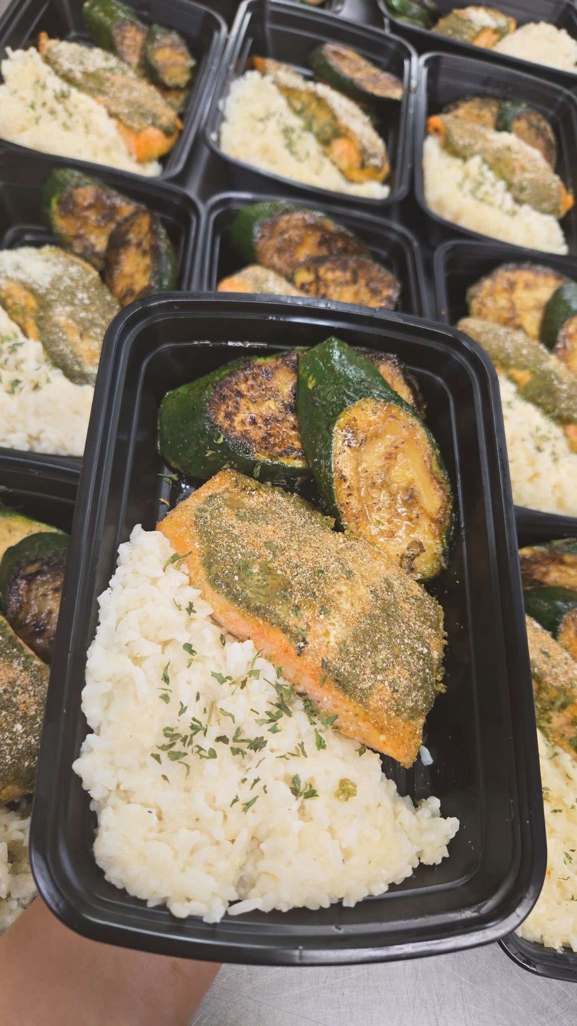 Baked Pesto Crusted Salmon (Wild Caught) w/ Parmesan Risotto