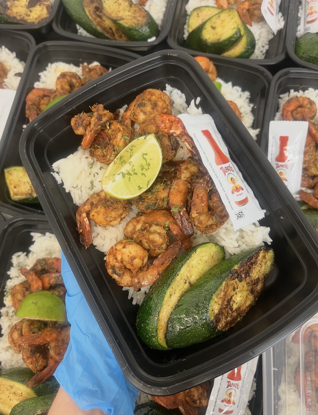 Shrimp, Garlic, Olive Oil, Red Pepper Flakes, Unsalted Butter, White Onion, Lime Juice, Fresh Cilantro, Smoked Paprika, Salt, Black Pepper, Jasmine Rice, Lime Wedge
