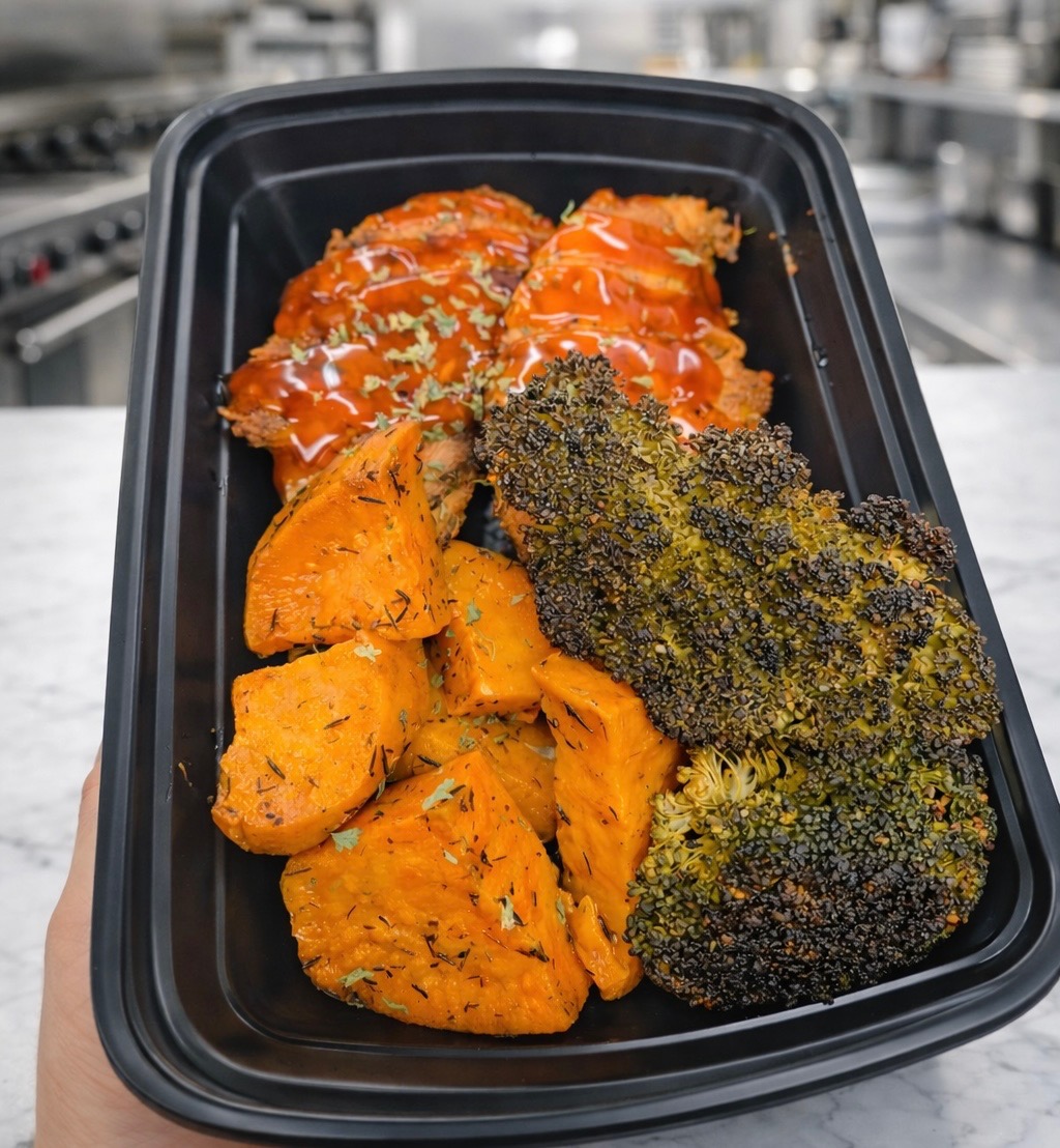 Chicken Breast, Olive Oil, Hot Honey (Honey, Chili Peppers), Honey, Apple Cider Vinegar, Garlic, Smoked Paprika, Chili Flakes, Salt, Black Pepper Broccoli, Olive Oil, Garlic, Salt, Black Pepper, Lemon Juice, Sweet Potatoes, Olive Oil, Hot Honey (Honey, Chili Peppers), Salt, Smoked Paprika